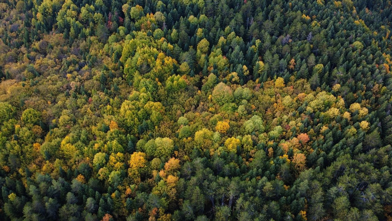 Kentin yüzde 70'ini kaplayan ağaçlık alanlara hakim olan sarı, kahverengi ve yeşilin tonlarının oluşturduğu sonbahar manzarası havadan görüntülendi.