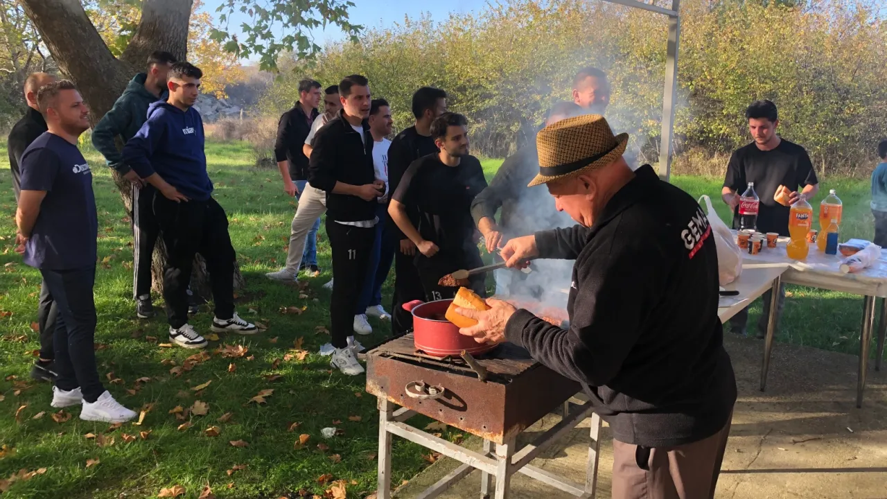 Edirne'de Süloğlu Belediye Başkanı Mehmet Ormankıran sezon öncesi oynanan hazırlık maçı sonrası futbolcularla mangal partisi düzenledi.