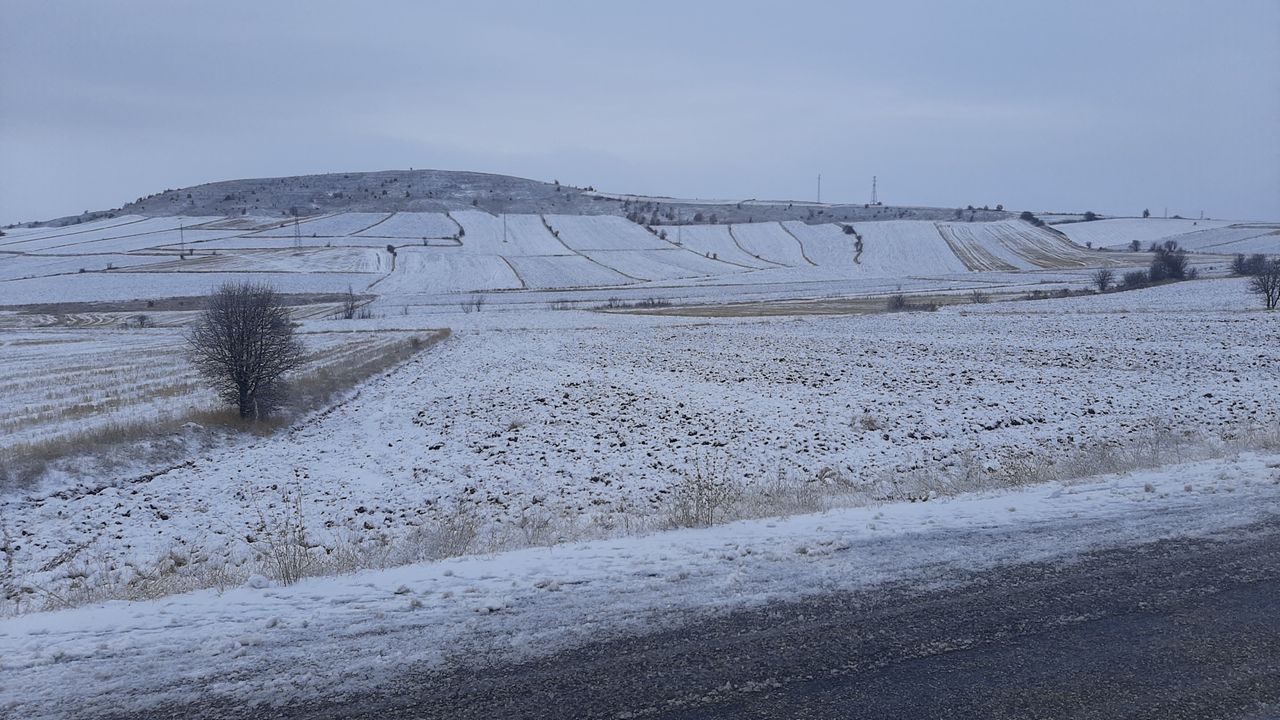 Çorum-Ortaköy kara yolunun bir bölümü de kar yağışıyla birlikte beyaz örtüye büründü.