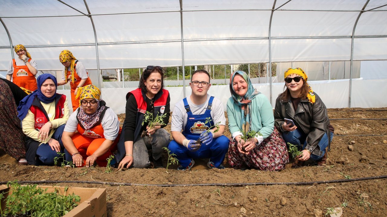 Özel gereksinimli bireylerden Sena Çadırcı da serada fide dikip otları kopardıklarını dile getirerek, 'Burası çok güzel, mutlu oluyorum. Mesela domatesleri diktik bugün, ondan önce marulları, soğanlarımızı dikmiştik. Daha sonra hem patlıcan hem biberlerimiz dikiliyor. Onlar Allah nasip ederse satışa sunulacak.' dedi.