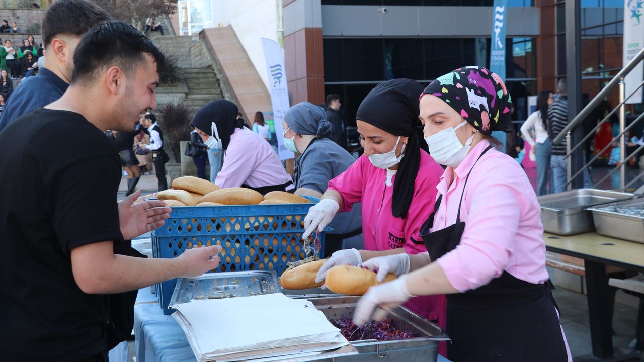 Kongre ve Kültür Merkezi önünde gerçekleşen şenliğe katılan öğrenciler, tulum eşliğinde horon tepip, ikram edilen hamsilerin tadına baktı.