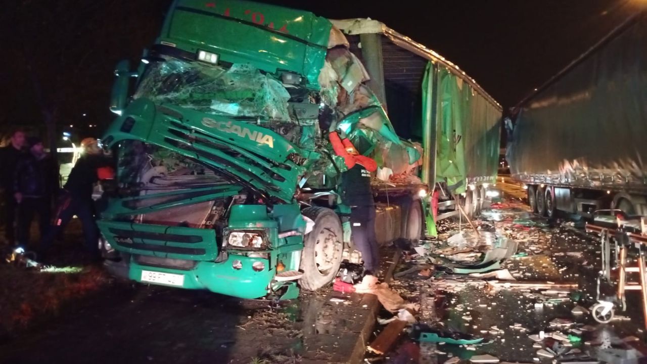 Z.E. idaresindeki yabancı plakalı tır, Kirazlık Mahallesinde seyir halindeyken T.A. yönetiminde kırmızı ışıkta bekleyen 77 JR 595 plakalı tıra çarptı.
