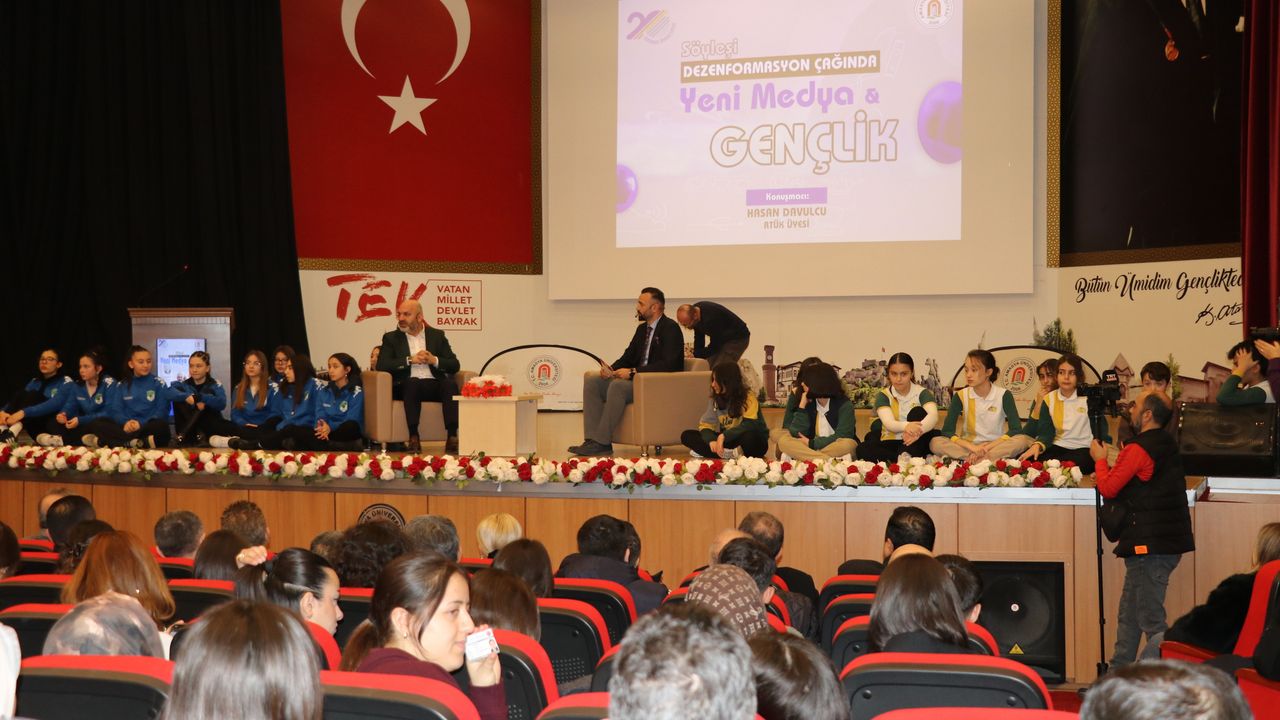 Amasya Üniversitesi Kongre ve Kültür Merkezinde gerçekleştirilen ve moderatörlüğünü Mustafa Gül'ün yaptığı söyleşide Davulcu, yapay zeka, sosyal medya, RTÜK'ün görevleri, dezenformasyonla mücadele başlıkları altında öğrencilere bilgi verdi.