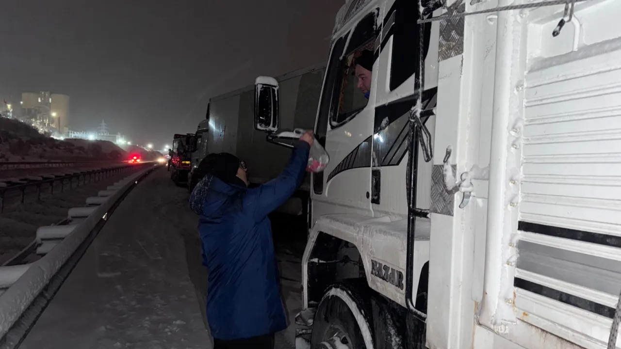 KAHRAMANMARAŞ (İGFA) - Bölgede görev yapan ekipler, mahsur kalan sürücü ve yolcularla tek tek ilgilenerek araçlara çeşitli ikramlarda bulundu.
