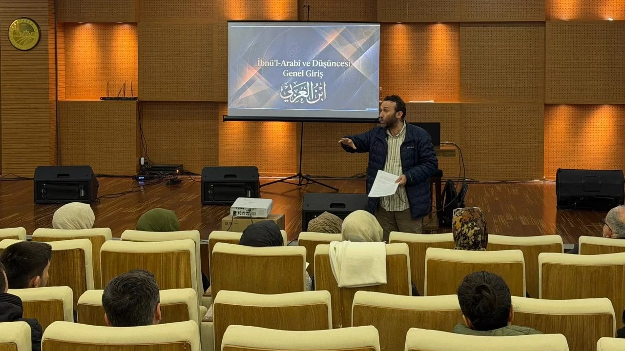 Doç. Dr. Ercan Alkan, 'İbnü'l-Arabi, yalnızca tasavvuf geleneğinin değil, düşünce tarihinin de en önemli isimlerinden biridir. Onun eserleri, varlık, bilgi ve hakikat üzerine derin bir bakış açısı sunar' ifadelerini kullandı. Katılımcılar, ders boyunca kavramlar üzerinden ilerleyerek İbnü'l-Arabi'nin düşünce sistemine dair temel bir perspektif kazandı.