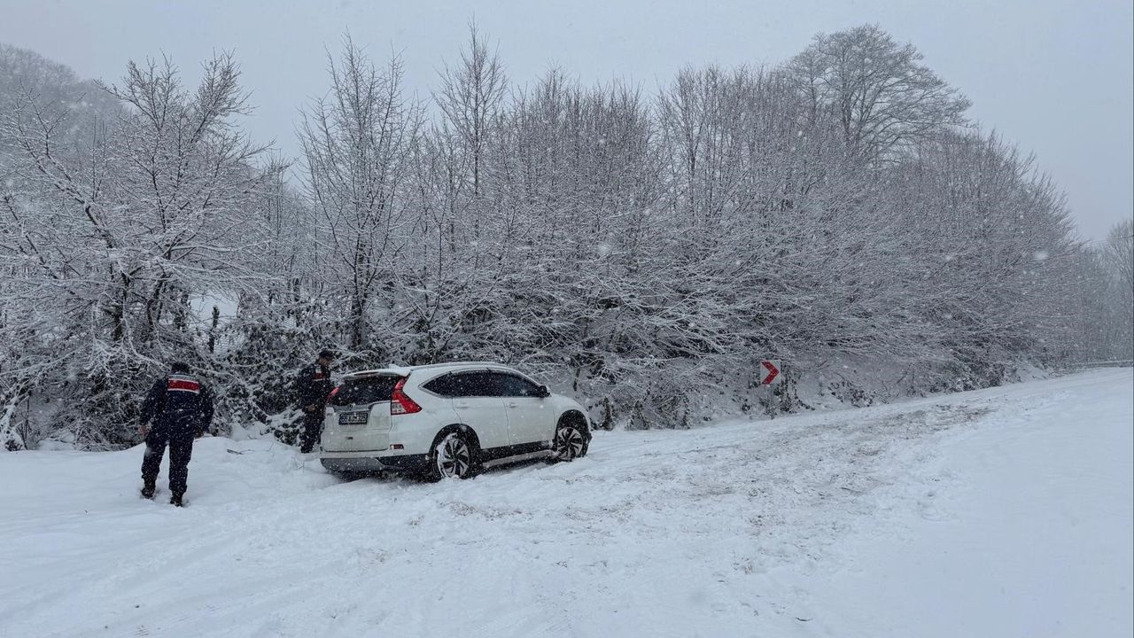 Jandarma ekipleri, sürücülere zincirsiz ve kış lastiği olmadan trafiğe çıkmamaları yönünde uyarıda bulundu.