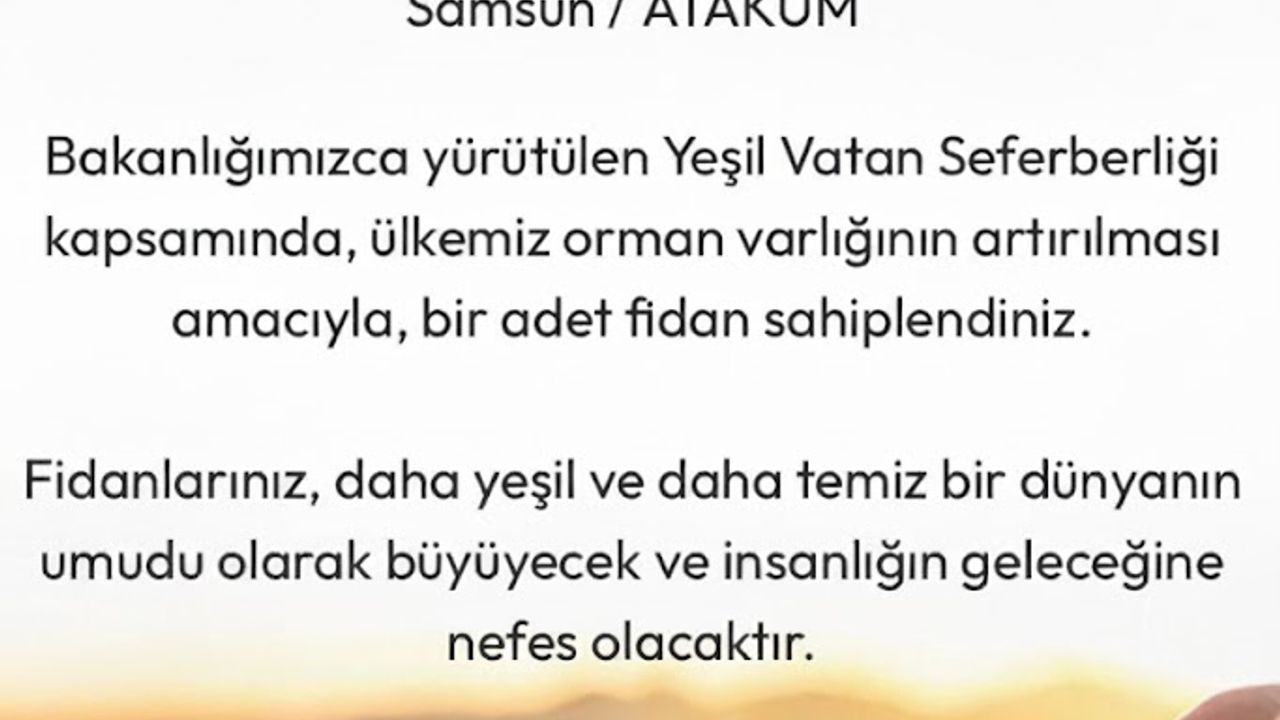 Tebrik kartında, Tarım ve Orman Bakanlığınca yürütülen 'Yeşil Vatan Seferberliği'ne katkı sunmak ve 10 Ocak Çalışan Gazeteciler Günü dolayısıyla kentte görev gazeteciler adına Samsun'un Atakum ilçesinde fidan bağışlandığı belirtildi.