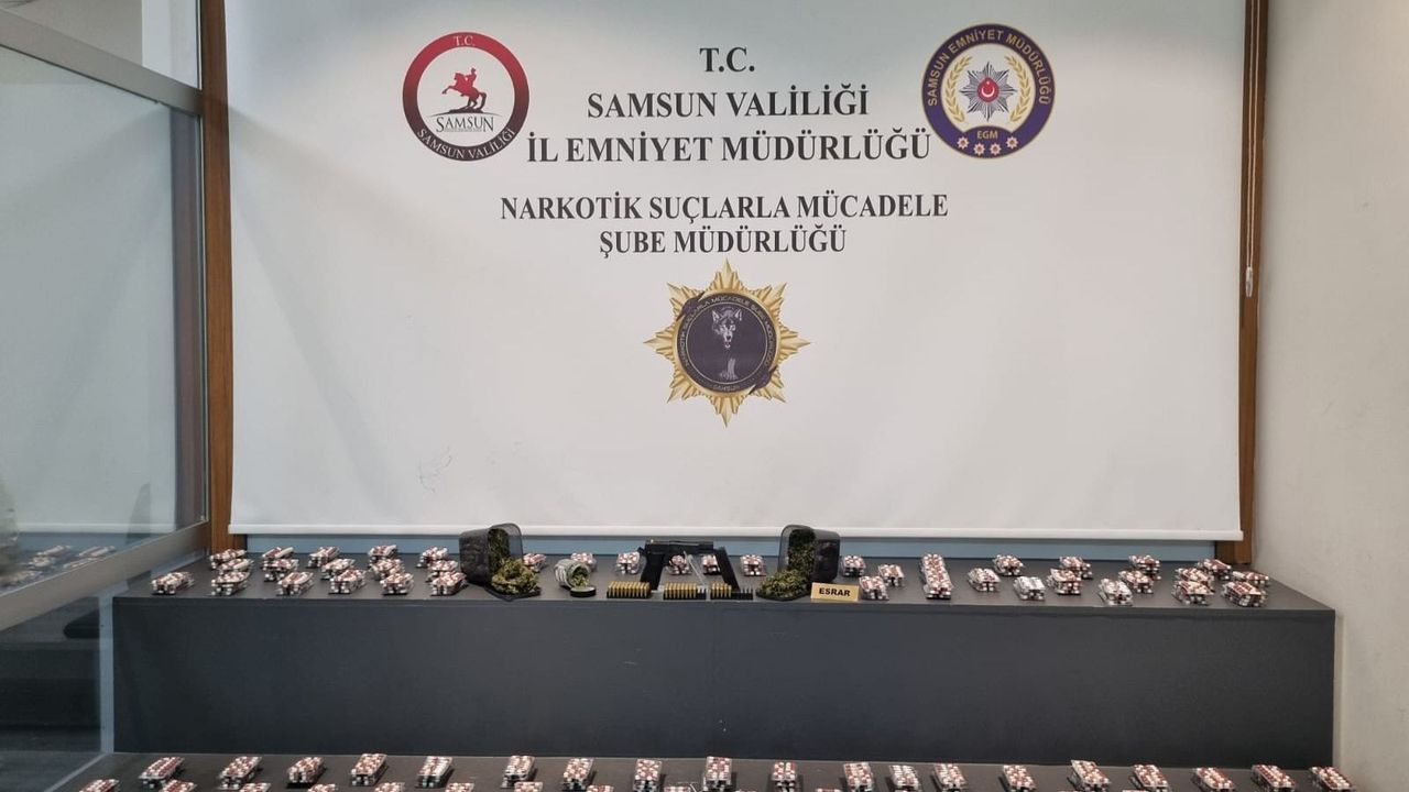 İlçede belirlenen adrese operasyon düzenleyen ekipler, 5 bin 516 sentetik ecza hapı, 560 gram esrar, ruhsatsız tabanca ve 113 tabanca fişeği ele geçirdi.