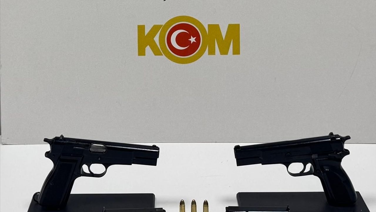 Araçta yapılan aramada, yedek lastiğe gizlenen 2 ruhsatsız tabanca, 3 tabanca fişeği ile 2 şarjör ele geçirildi.