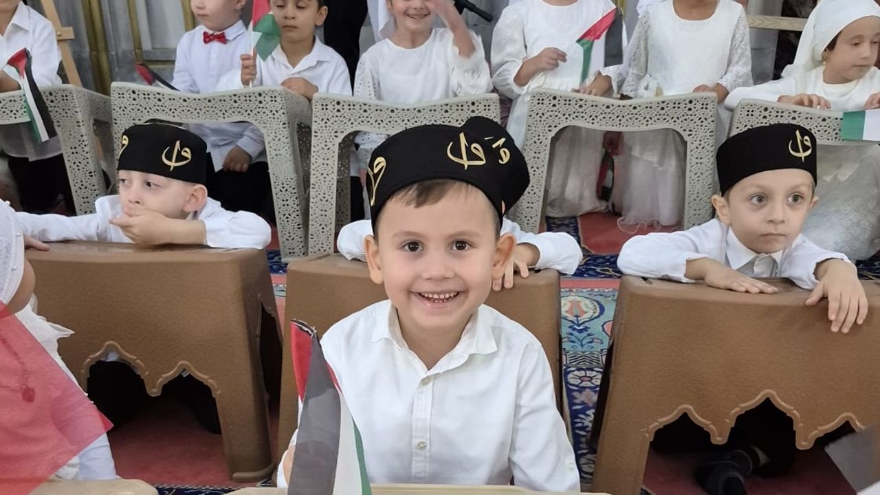 Bafra İlçe Müftülüğüne bağlı Minik Kalpler 4-6 yaş Kur'an Kursu tarafından düzenlenen etkinlikte minik öğrenciler, öğretmenleri eşliğinde Türk ve Filistin bayrakları taşıyarak Nuri İbrahim Camisi'ne geldi.