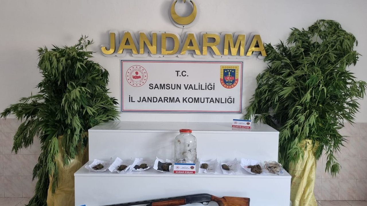 Samsun İl Jandarma Komutanlığı İstihbarat Şube Müdürlüğü, Narkotik Suçlarla Mücadele Şube Müdürlüğü, Kaçakçılık ve Organize Suçlarla Mücadele Şube Müdürlüğü ve Bafra İlçe Jandarma Komutanlığı ekiplerince şüphelinin evine yapılan operasyonda, 26 kök kenevir bitkisi, 120 gram kubar esrar, 2 ruhsatsız av tüfeği,