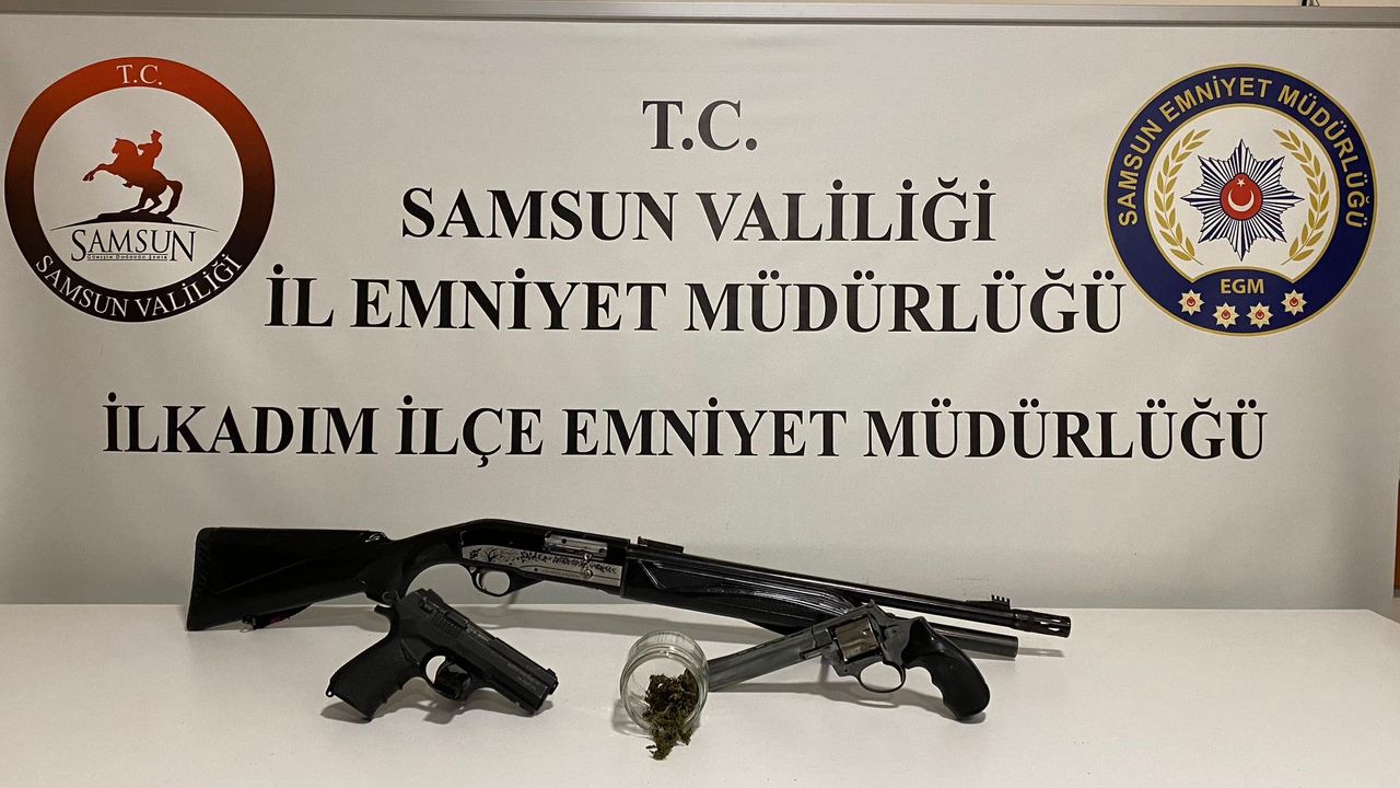SAMSUN (AA) - Samsun'un İlkadım ilçesinde düzenlenen operasyonda evinde ruhsatsız silah ve uyuşturucu ele geçirilen şüpheli gözaltına alındı.