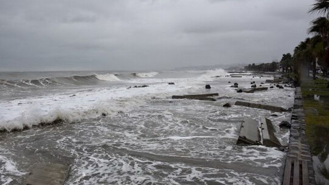 Adnan Menderes Bulvarı'ndaki sahildeki taşlar ve beton bariyerler, dalgaların etkisiyle yürüyüş ve bisiklet yolunu kapattı. Belediye ekipleri, bölgede şerit çekerek güvenlik önlemi aldı.