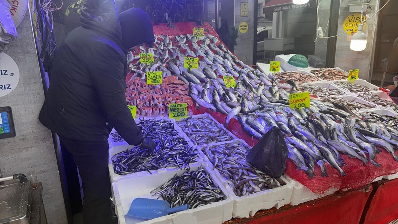 Saathane Meydanı'ndaki balıkçı tezgahları, bol balık çeşidiyle hareketlendi.