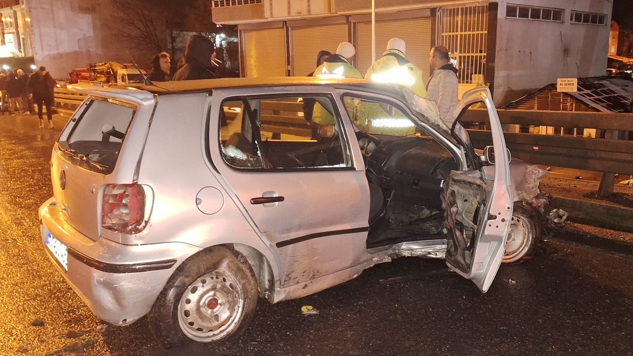 Savrulan 55 ALC 458 plakalı otomobil, aydınlatma direğiyle refüjde bulunan bariyere çarparak durabildi.