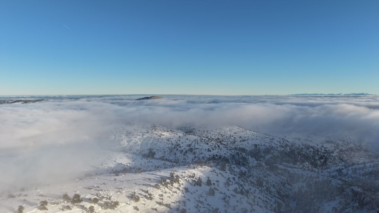 SAMSUN (AA) - Samsun'un Alaçam ilçesinde karla kaplanan Dürtmen Dağı'nda oluşan sis dronla kaydedildi.