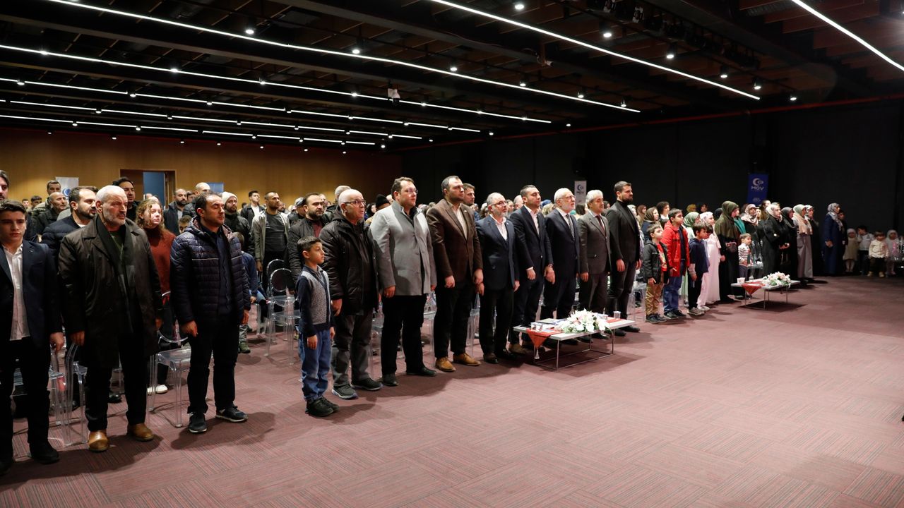 Anadolu Gençlik Derneği Samsun Şubesi ve Milli Gençlik Vakfı tarafından Samsun Büyükşehir Belediyesi Şehit Ömer Halisdemir Çok Amaçlı Salon'da düzenlenen program İstiklal Marşı okunmasının ardından Kur'an-ı Kerim tilavetiyle başladı.