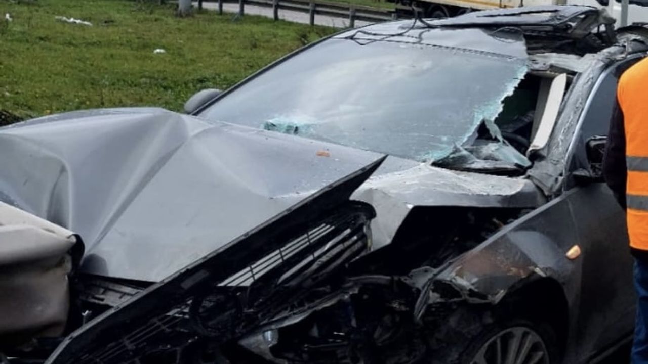 Savrulan otomobilin kavşakta bariyere saplanarak durabildiği kazada, araç sürücüleri ile otomobilde bulunan Sevim A. yaralandı.