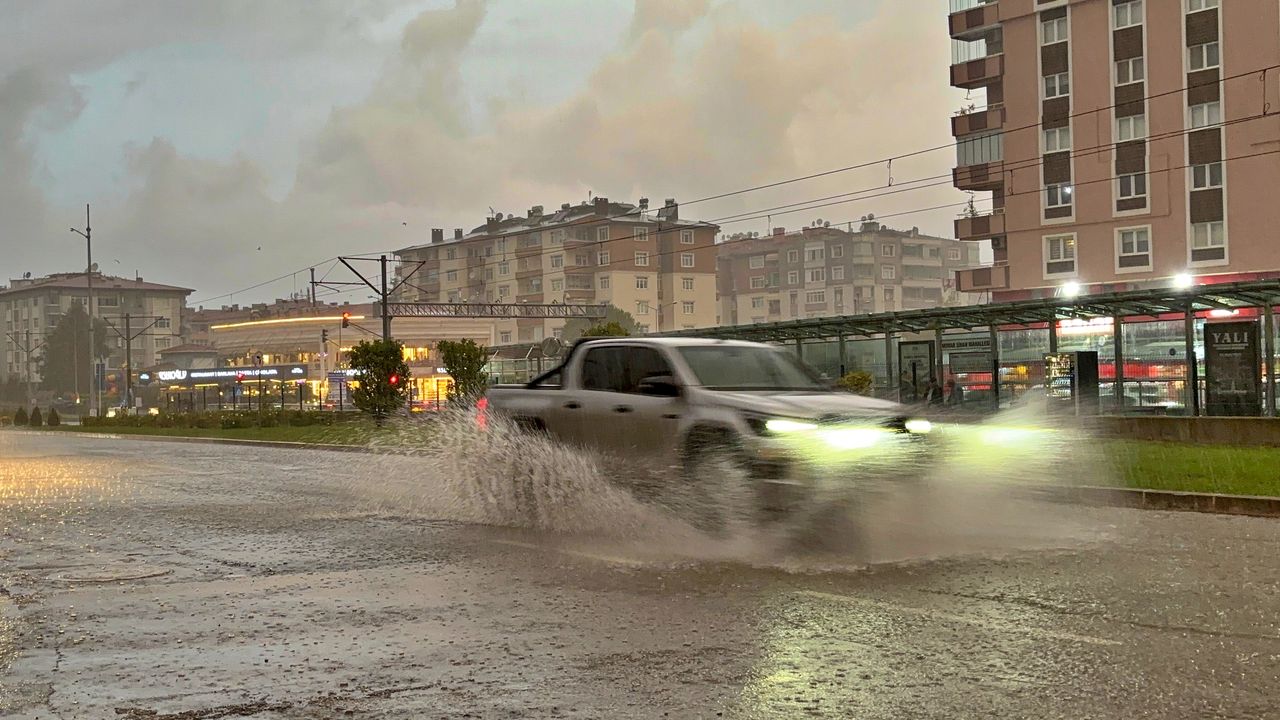 Araç sürücüleri yağış nedeniyle oluşan su birikintilerinde ilerlemekte güçlük çekti.