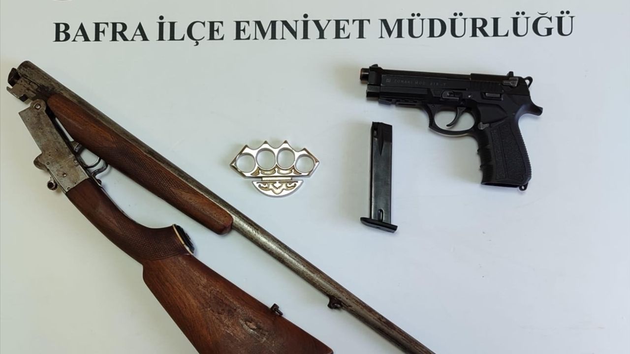 Düzenlenen operasyonda Bafra ilçesinde gözaltına alınan zanlının ikametinde yapılan aramada, kurusıkı tabanca, ruhsatsız av tüfeği ve muşta ele geçirildi.
