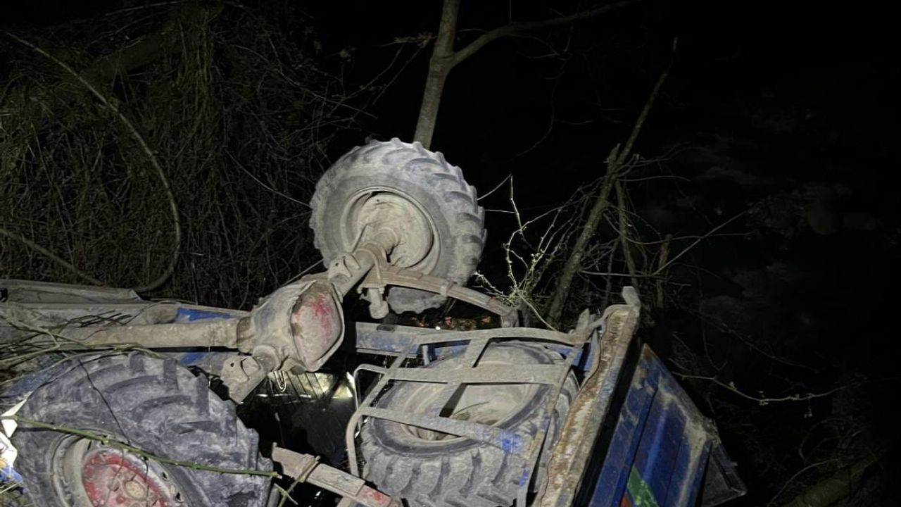 Yeşilçam Mahallesi'nde, Akif Gökçe'nin (60) kullandığı 'patpat' diye tabir edilen tarım aracı, dereye devrildi.