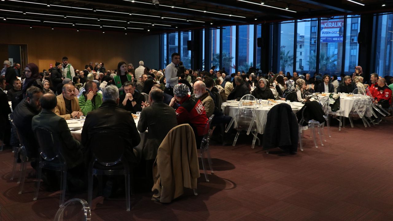 Büyükşehir Belediyesi Çok Amaçlı Salon'da düzenlenen programda katılımcılar hurma, su, çorba ve zeytinle iftar yaptı.