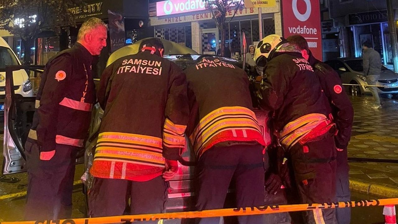 Samsun Büyükşehir Belediyesi Bafra İtfaiye Amirliği ekiplerinin müdahalesiyle söndürülen yangın sonucu otomobil kullanılamaz hale geldi.