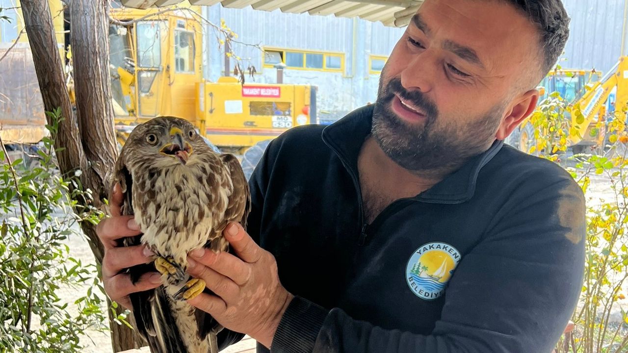 Samsun-Sinop kara yolunda çalışma yapan belediye ekipleri, yol kenarında yaralı bir şahin fark etti.