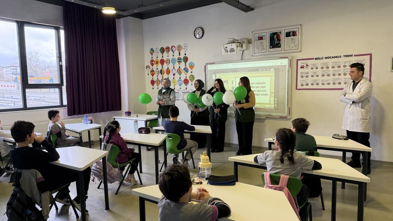 Bunun üzerine Genç Yeşilay gönülleri öğrencileri sınıfta ziyaret ederek, Yeşilay'ın tanıtımı, teknoloji bağımlılığı ve sağlıklı yaşam konularında sunum yaptı.