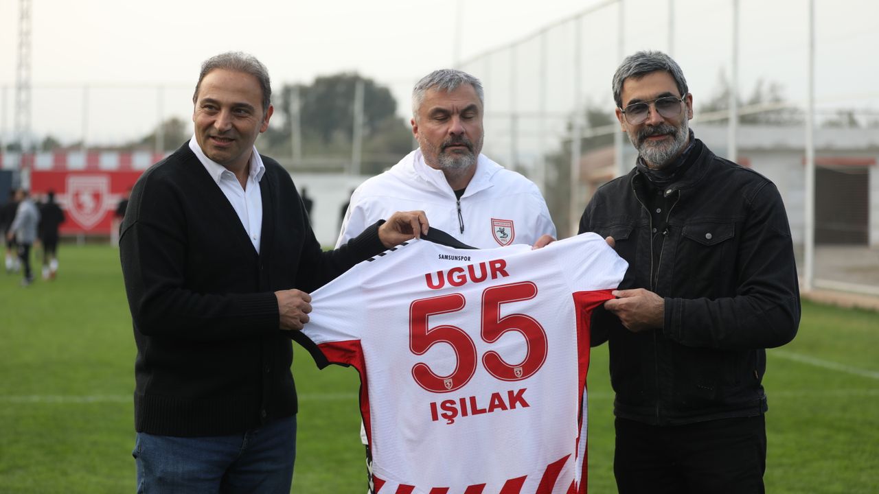 Belgesel çekimi için Samsun'da bulunan ve idmanı izleyen sanatçı Uğur Işılak, Samsunspor Futbol Direktörü Fuat Çapa ve teknik direktör Thomas Reis ile görüştü.