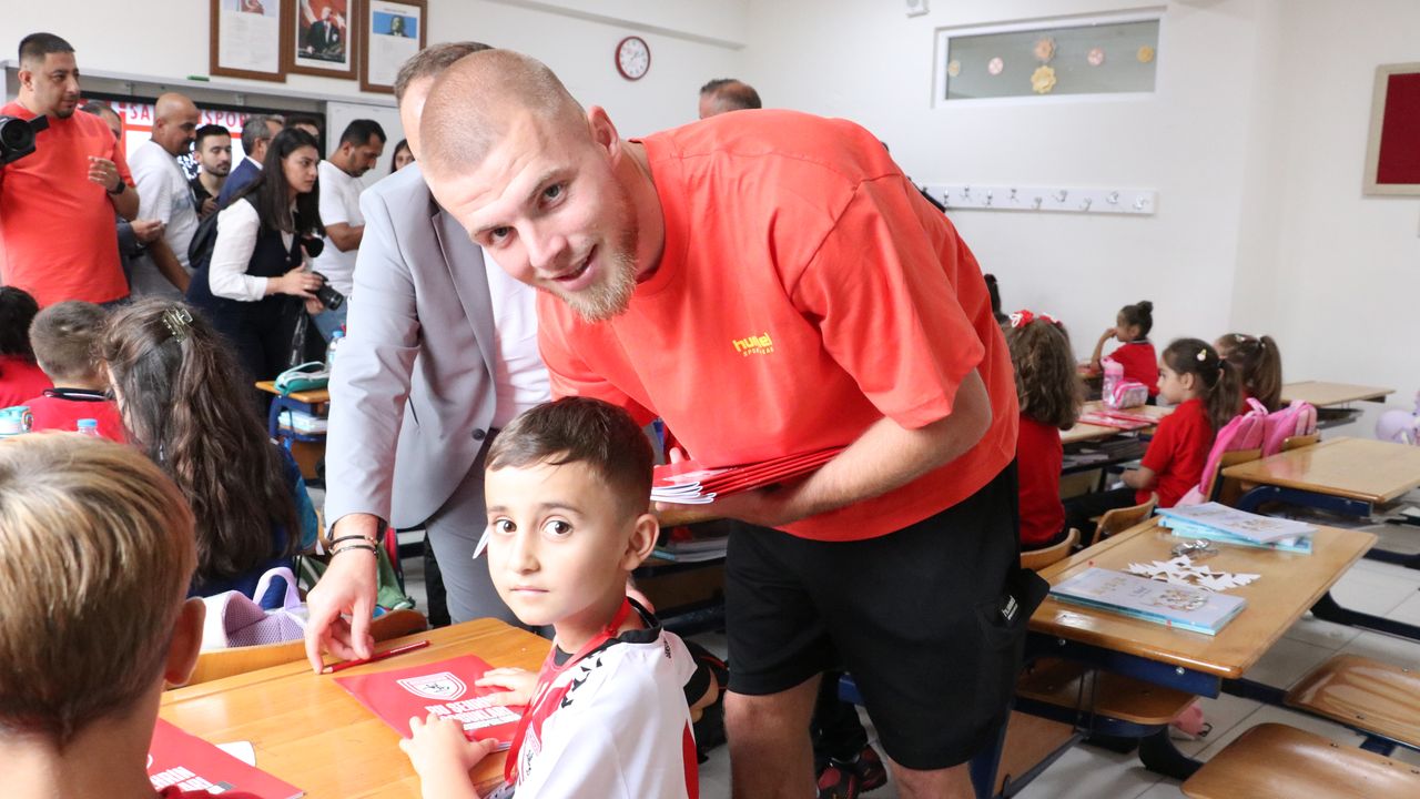 Atakum Bayındır İlkokulu'nda düzenlenen etkinlikte, Samsunsporlu futbolcular Zeki Yavru, Soner Aydoğdu, Yunus Emre Çift, Rick van Drongelen okula yeni başlayan çocuklarla bir araya geldi.