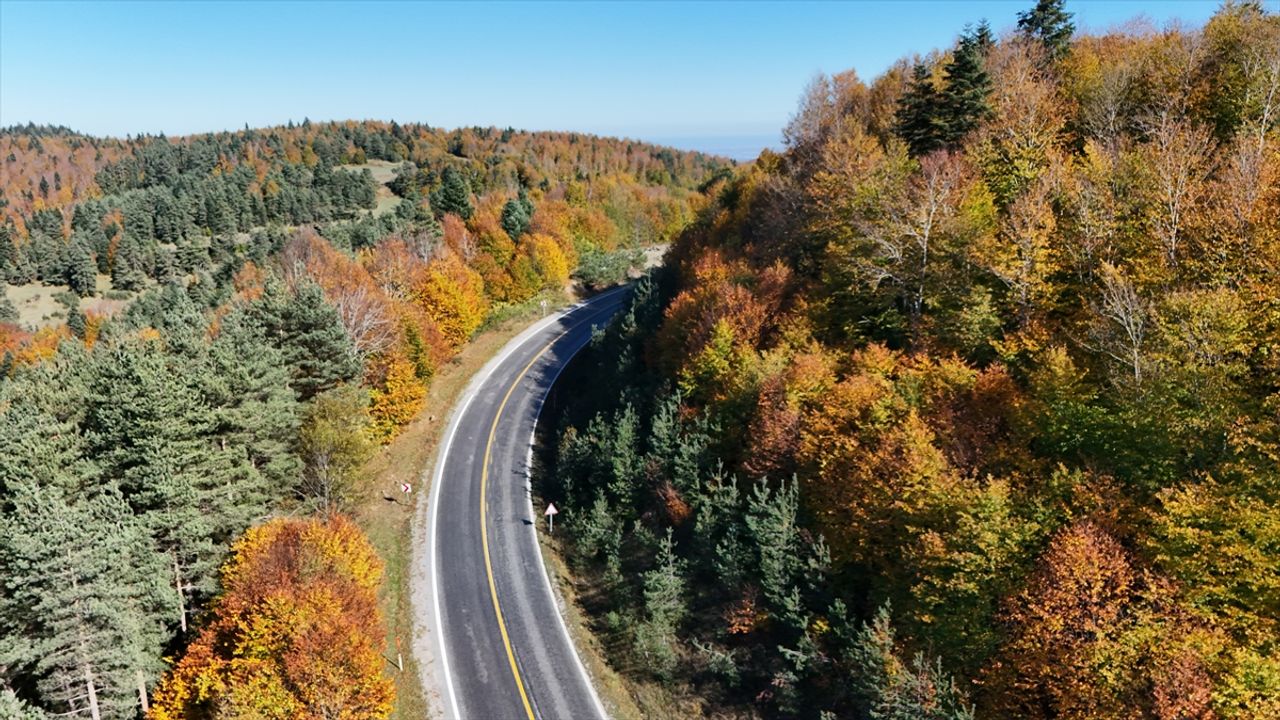 Kızlan Yaylası ormanlarındaki renk cümbüşü, dronla görüntülendi.