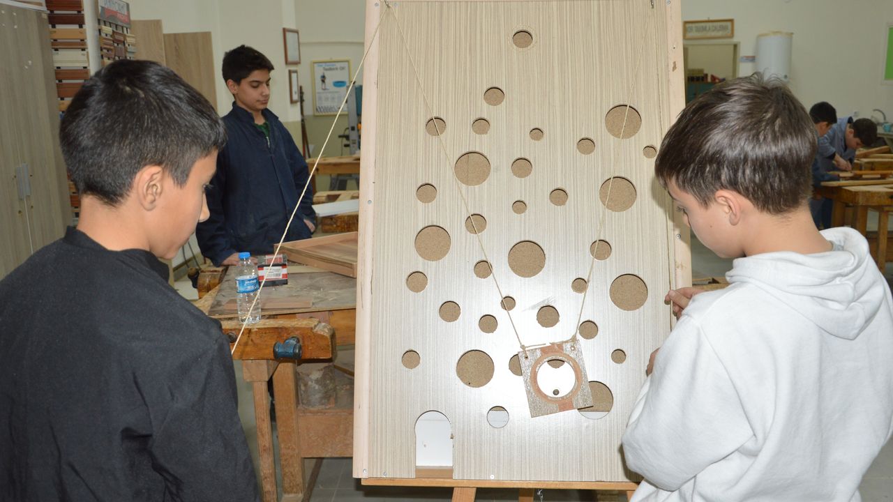 İlçedeki ortaokullarda gerçekleştirilen tanıtım faaliyetlerinin ardından gönüllü 7. ve 8. sınıf öğrencileri için elektrik-elektronik, mobilya ve robotik kodlama alanlarında kurslar oluşturuldu. Hafta sonu yürütülen çalışmalarda öğrencilerin yakma, rendeleme ve oyma gibi temel marangozluk uygulamaları deneyimleme fırsatı buluyor.