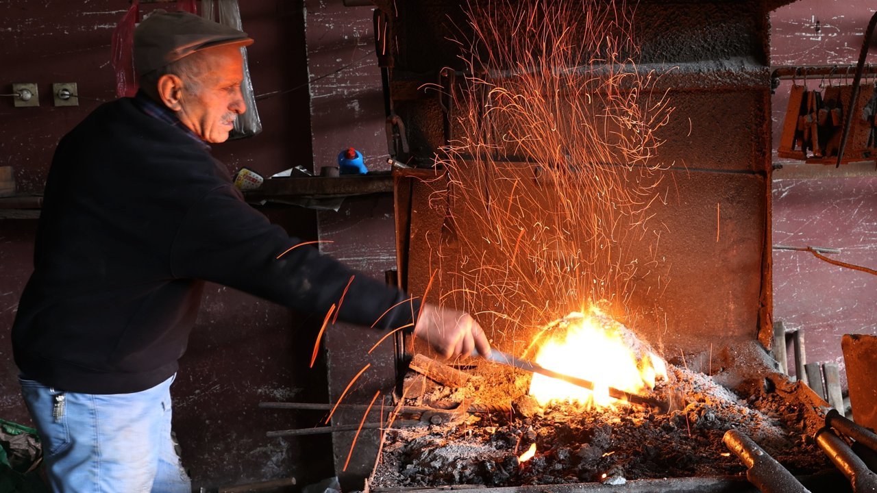 İlçede 'ihtiyar delikanlı' olarak tanınan Karagül, 81 yıldır örste demir döverek geçimini sağlıyor.
