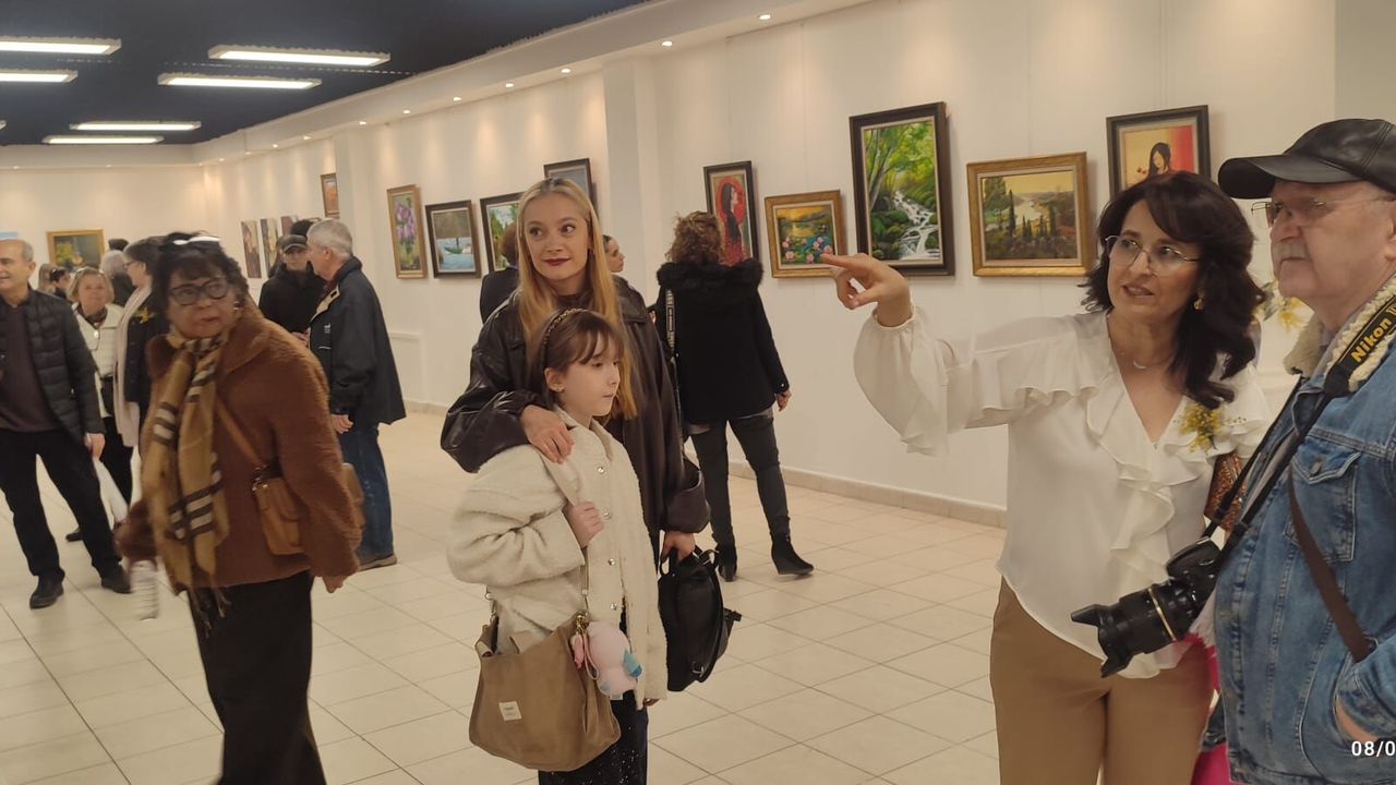 S. Yıldız Güzen: 91 resmimiz var, 18 tane kadının benimle birlikte 19 tane kadının çalışmalarından derlemiş olduğunuz sergimize kadınların içinde yalnız bir tane erkeğimiz var. Ziya Yiğit Şenlik. Biliyorsunuz kadınlar dünyaya güzellikler katmak, hoşluklar katmakla ve kadın erkek eşitliği, kadının şiddeti, kadınlara sevgi göstersin istiyoruz. Dünyadaki erkekler güzellikler göstersin istiyoruz. Çünkü biz dünyaya sevgi ve güzellik katmış kişileriz. Bu sergimizde de güzel bir ambiyans yarattığımızı umuyorum.