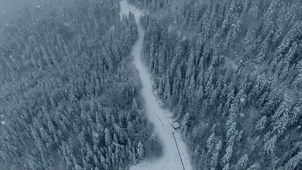İlçe merkezine 25 kilometre uzaklıktaki Kızlan Yaylası, kar yağışının ardından beyaz örtüyle kaplandı.