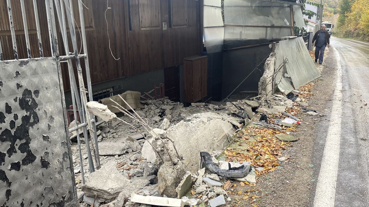 İstinat duvarının bir kısmı yıkıldı. İhbar üzerine kaza yerine sağlık ve jandarma ekipleri sevk edildi.
