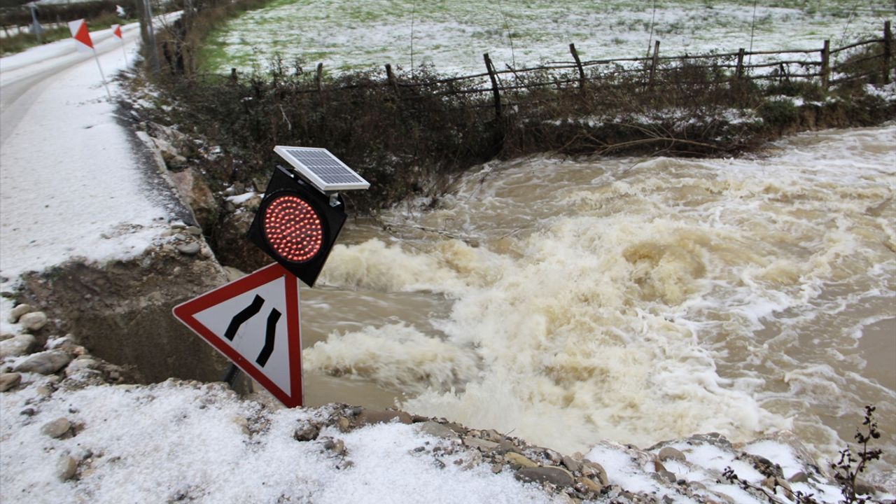 SİNOP (AA) - Sinop'ta kar nedeniyle bazı köy yolları ulaşıma kapanırken, sağanak sonucu tarım arazileri su altında kaldı.