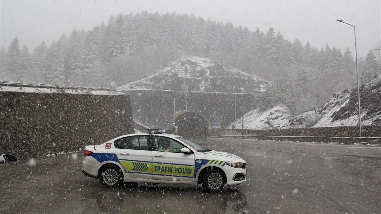 Kar yağışının aralıklarla etkisini sürdürdüğü Dıranaz mevkisinde, trafik ekipleri sürücüleri takip mesafesini korumaları ve aşırı hızdan kaçınmaları konusunda uyardı.