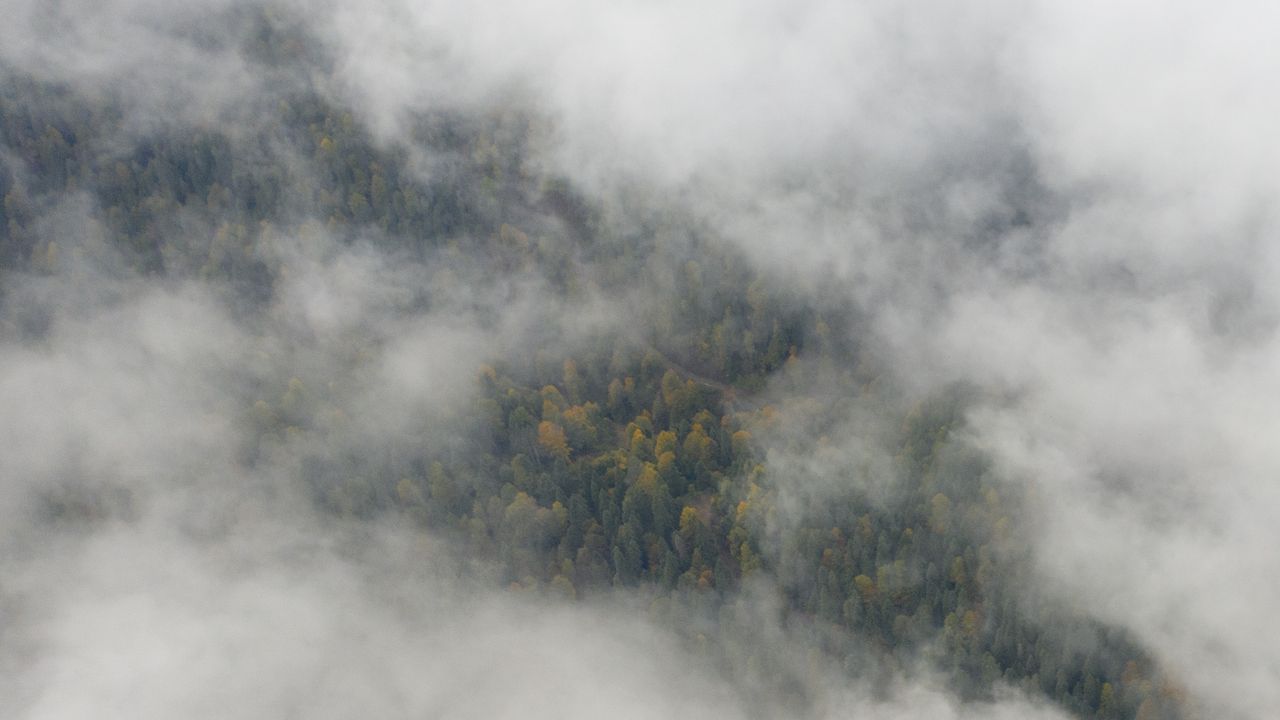 BOLU (AA) - Bolu'nun doğal güzellikleriyle ünlü Yedigöller Milli Parkı yolunda etkili olan sis dronla görüntülendi.