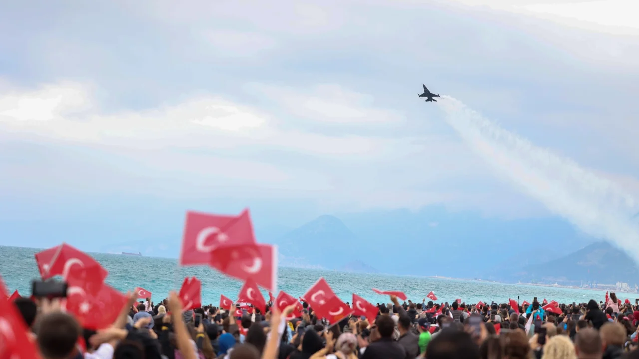 23 Nisan Ulusal Egemenlik ve Çocuk Bayramı etkinlikleri kapsamında Konyaaltı Sahili'nde gösteri uçuşu yapan Türk Silahlı Kuvvetleri'nin akrobasi timi SOLOTÜRK nefes kesti. Antalya Büyükşehir Belediyesi Başkan Vekili Büşra Özdemir de SOLOTÜRK gösterisini Çocuk Başkan Can Toprak Güven ile birlikte izledi.