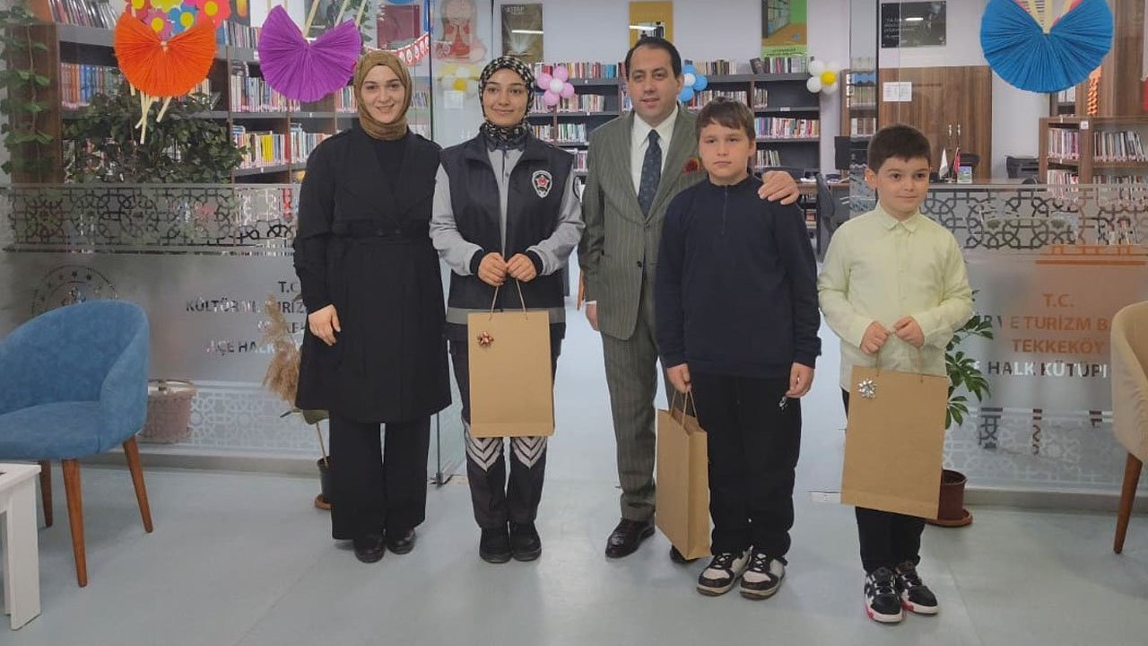 Kütüphane Haftası kapsamında ayrıca, son bir yıl içinde çocuk, genç ve yetişkin kategorilerinde en fazla kitap ödünç alan okuyuculara hediyeleri Tekkeköy Kaymakamı Enver Hakan Zengince tarafından verildi.