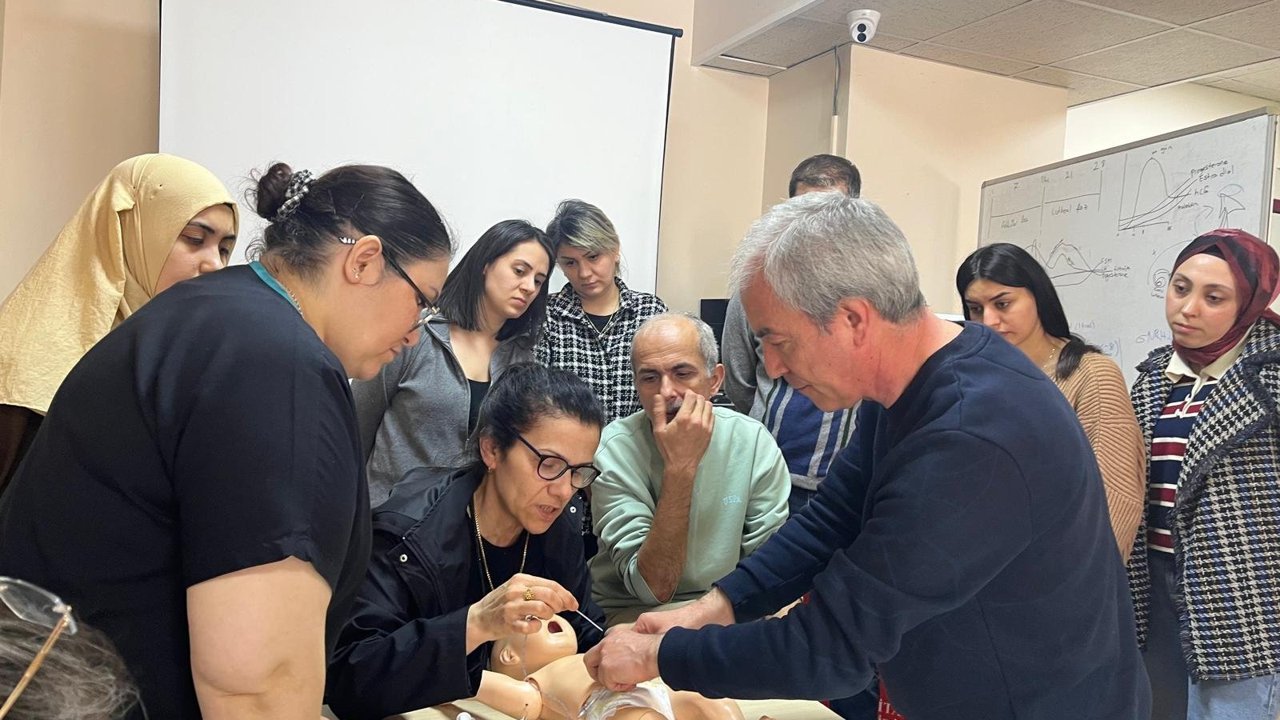 Eğitim; Halk Sağlığı Hizmetleri Başkanlığı’nda görevli NRP Kurs Sorumlusu Sevil Çelik, Neonatoloji Uzmanı Dr. Melike Kefeli Demirel, Rahşan Dilek Okyay, Dr. Makbule Ercan, Hemşireler Şengül Bayrak ve Nihal Kalıncı, Mehmet Cantürk ile Ebe Nagehan Kabasakal tarafından verildi.