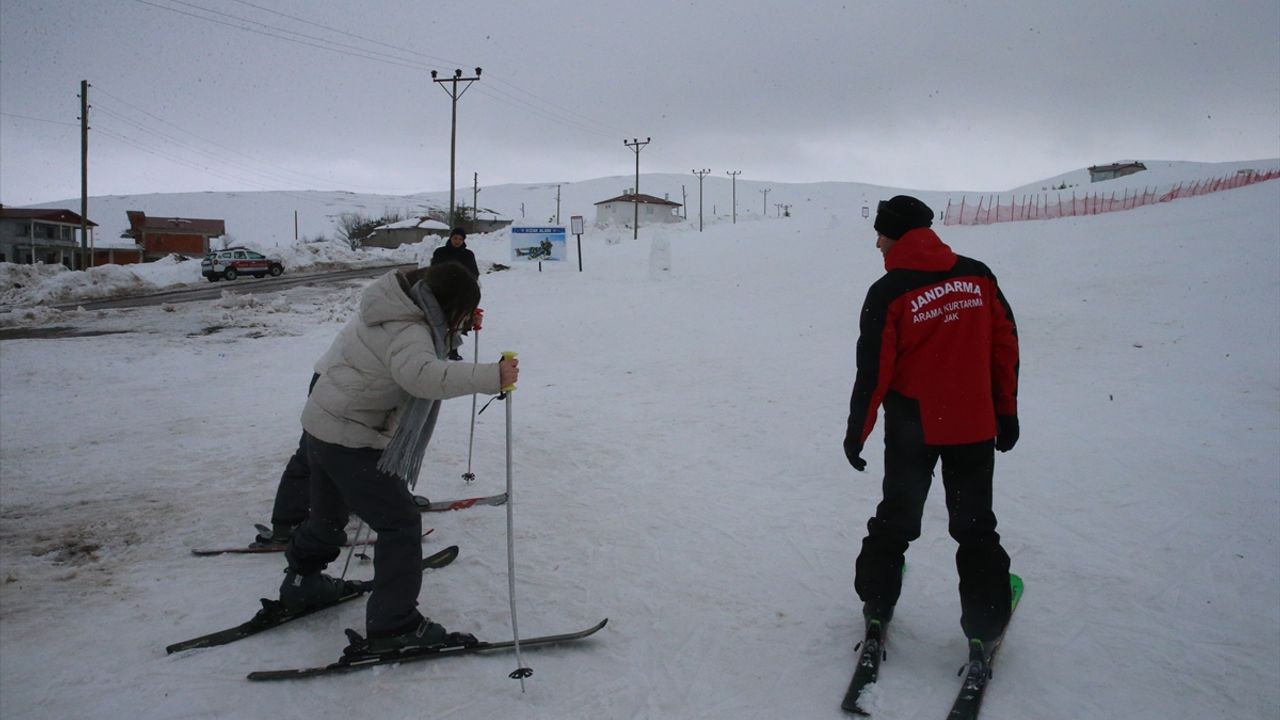 İl Jandarma Komutanlığı Jandarma Arama Kurtarma (JAK) Timi tarafından Başçiftlik Kayak Merkezi'nde verilen 5 saatlik eğitime, yaklaşık 30 çocuk ve şehit ile gazi yakını katıldı.