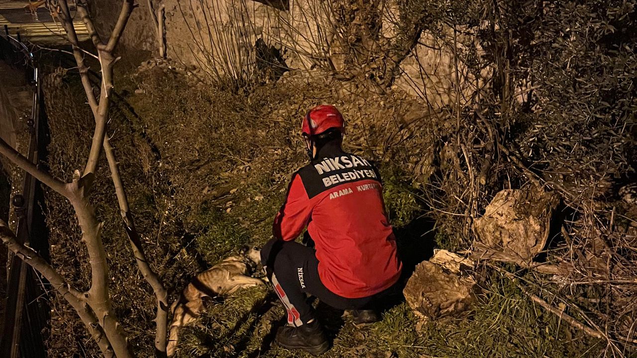 Niksar Belediyesi itfaiye ekipleri tarafından köpek, bulunduğu yerden çıkarıldı.