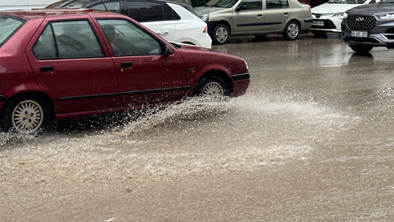 Sağanak sonrası Gaziosmanpaşa Bulvarı'ndaki yolda su birikintisi oluştu, sürücüler yolda ilerlemekte güçlük çekti.