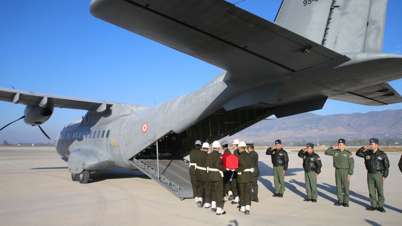 Şehit Piyade Er Eyüp Güner'in cenazesi, tören mangası eşliğinde askeri uçağa konularak baba ocağı Gaziantep'e uğurlandı.