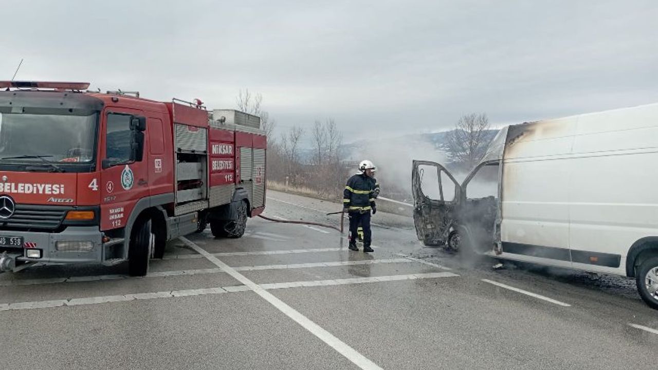 TOKAT (AA) - Tokat'ın Niksar ilçesinde seyir halindeki minibüste çıkan yangın söndürüldü.