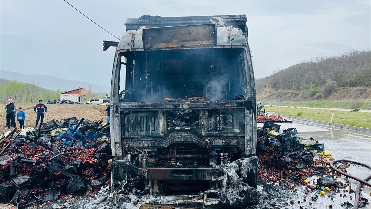 M.D. (32) idaresindeki 35 Z 2524 plakalı kamyon, Tokat-Niksar kara yolu Gökdere köyü yakınlarında seyir halindeyken motor bölümünden alev aldı.