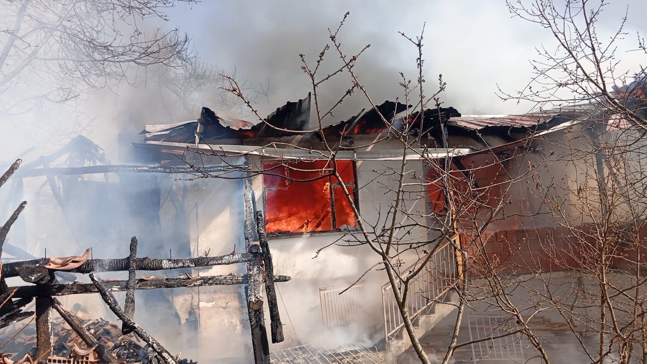 İlçeye bağlı Canpolat köyünde Yunus S'ye ait iki katlı evde henüz bilinmeyen nedenle yangın çıktı.